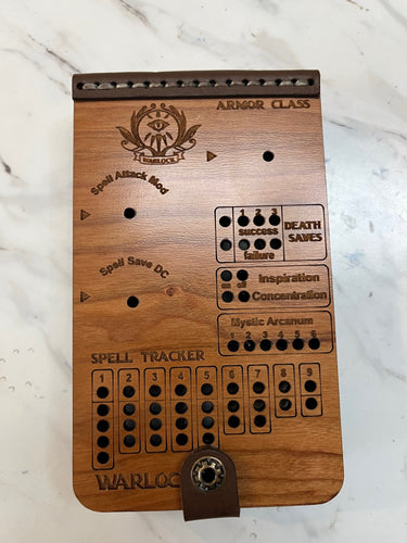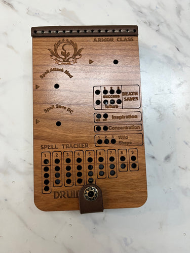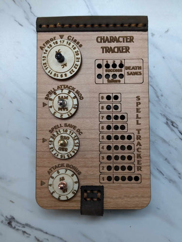 Each tracker is a handcrafted fusion of genuine leather and engraved hardwood, bringing your campaign to life—tactile, immersive, and made for legends.