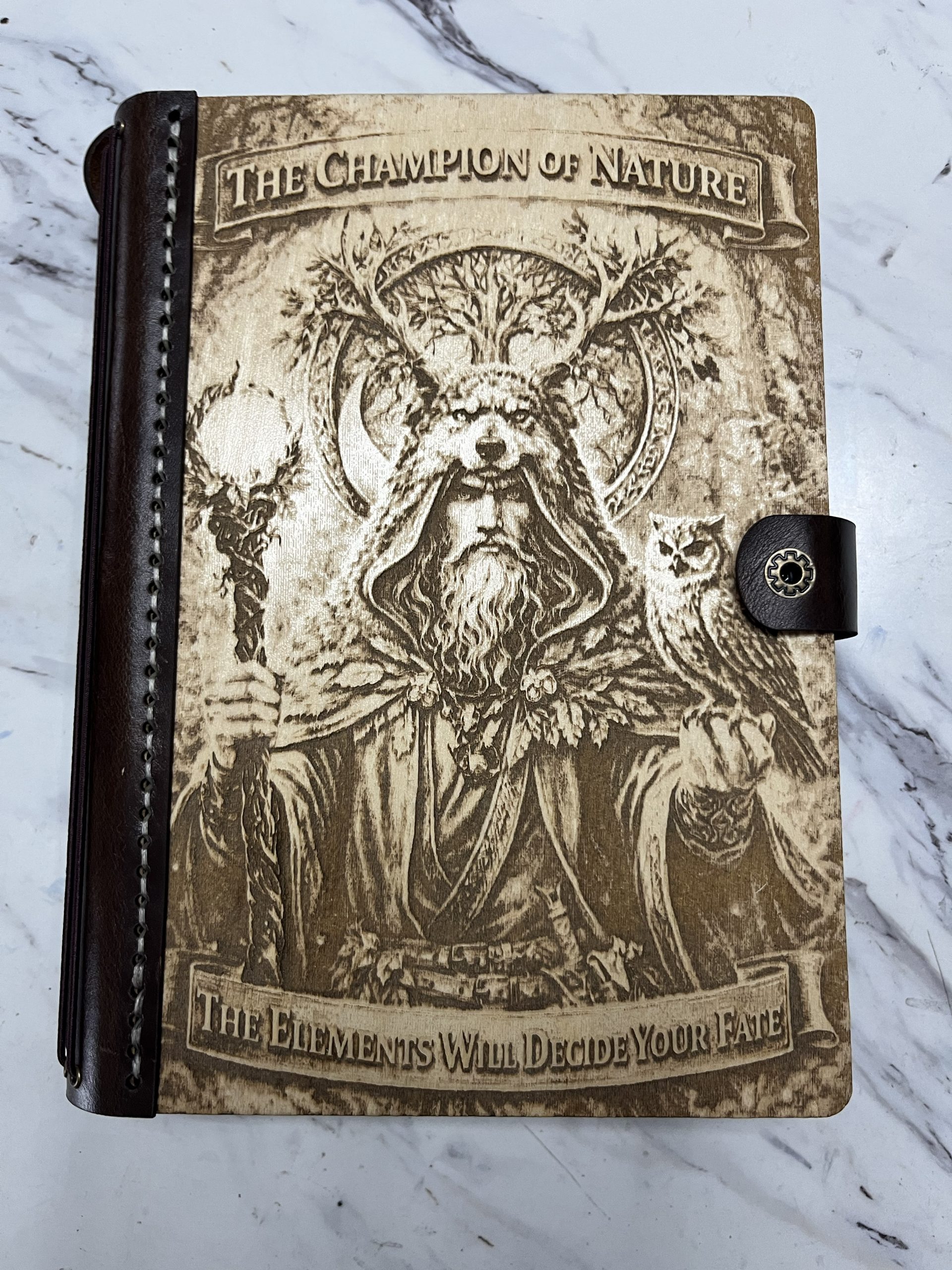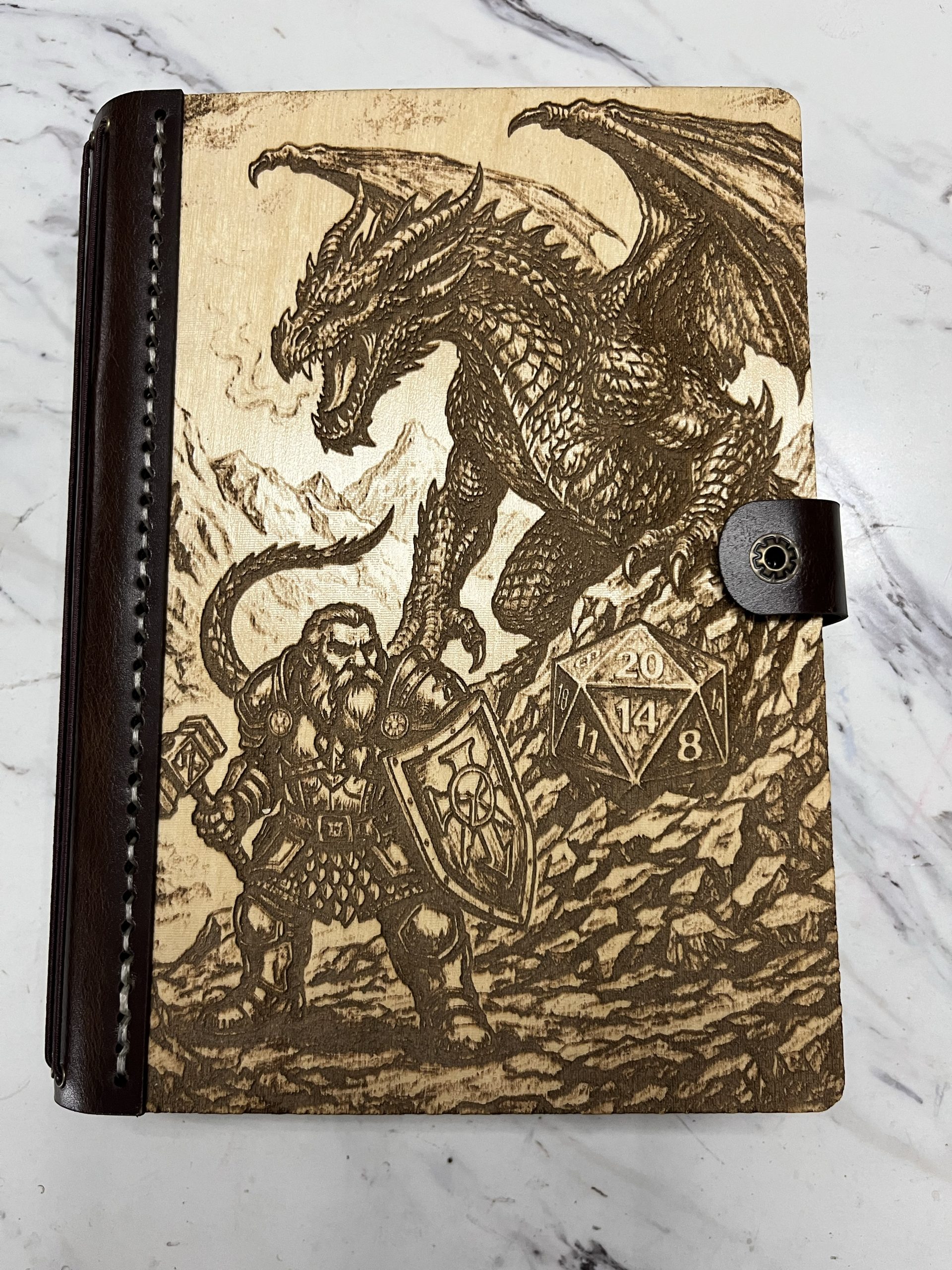 Tame the chaos of game night with this handcrafted RPG Player Tracker, forged from engraved white birch and hand-stitched genuine leather. Built for adventurers who prefer their gear organized and their notes ready at a moment’s notice.