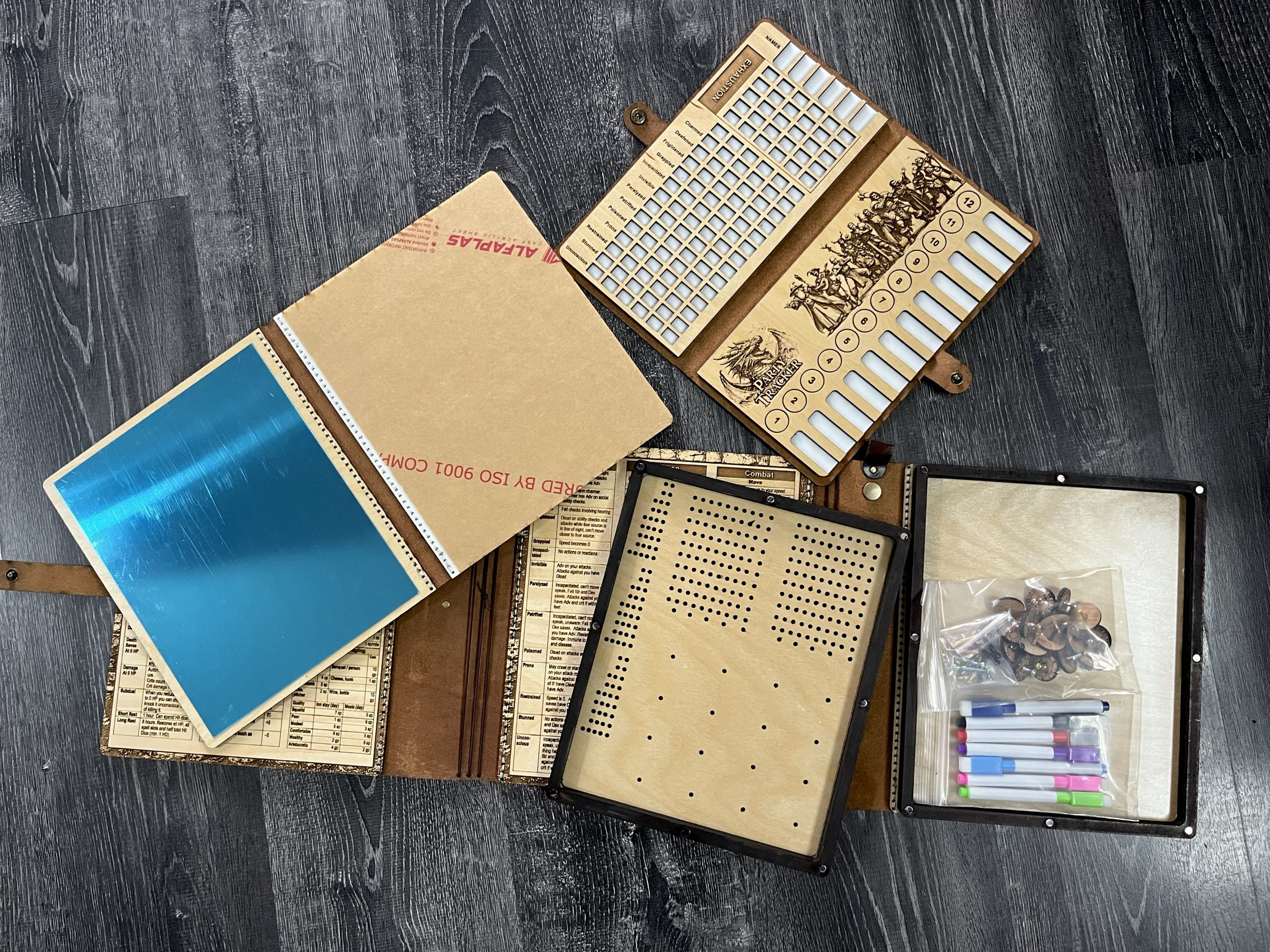 To keep your game running smoothly, the screen includes a removable initiative tracker and a magnetic dry-erase panel backed with a metal sheet—perfect for magnets, quick notes, conditions, or tracking the ever-changing chaos of battle.