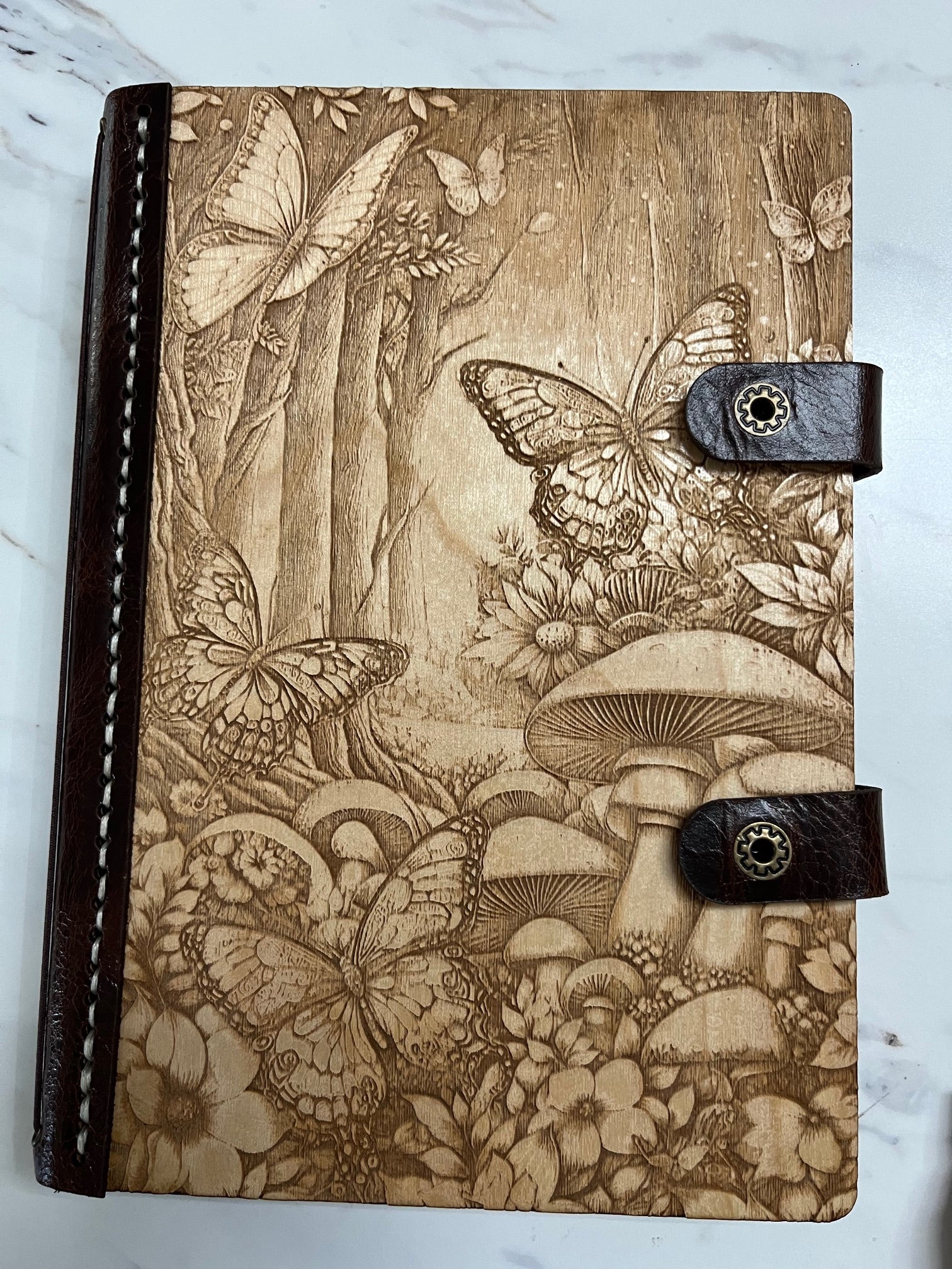 Our hand-stitched journals blend nature and craftsmanship beautifully. Made from white birch wood and genuine leather, each journal features unique, custom-engraved designs.