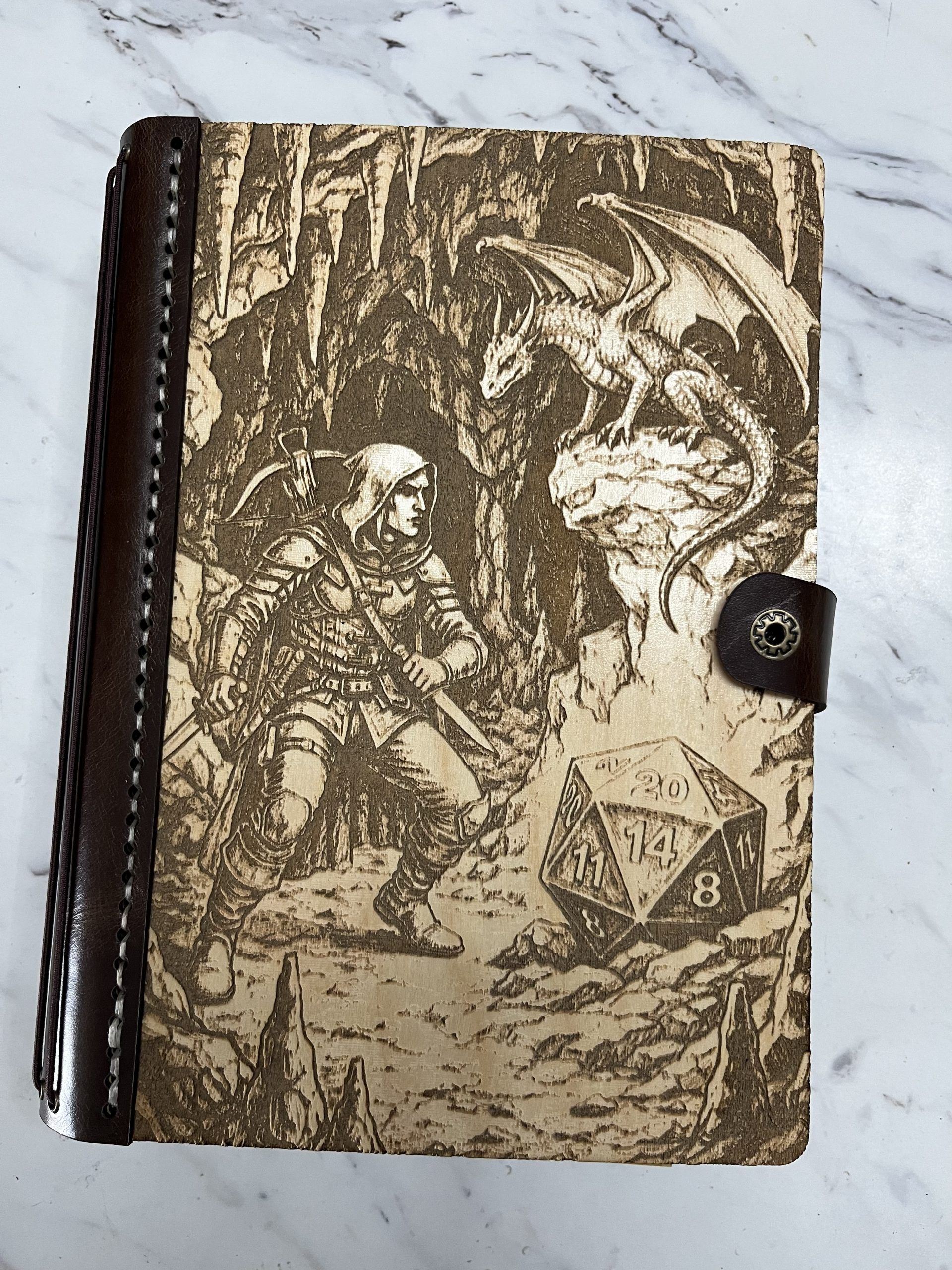 Tame the chaos of game night with this handcrafted RPG Player Tracker, forged from engraved white birch and hand-stitched genuine leather. Built for adventurers who prefer their gear organized and their notes ready at a moment’s notice.