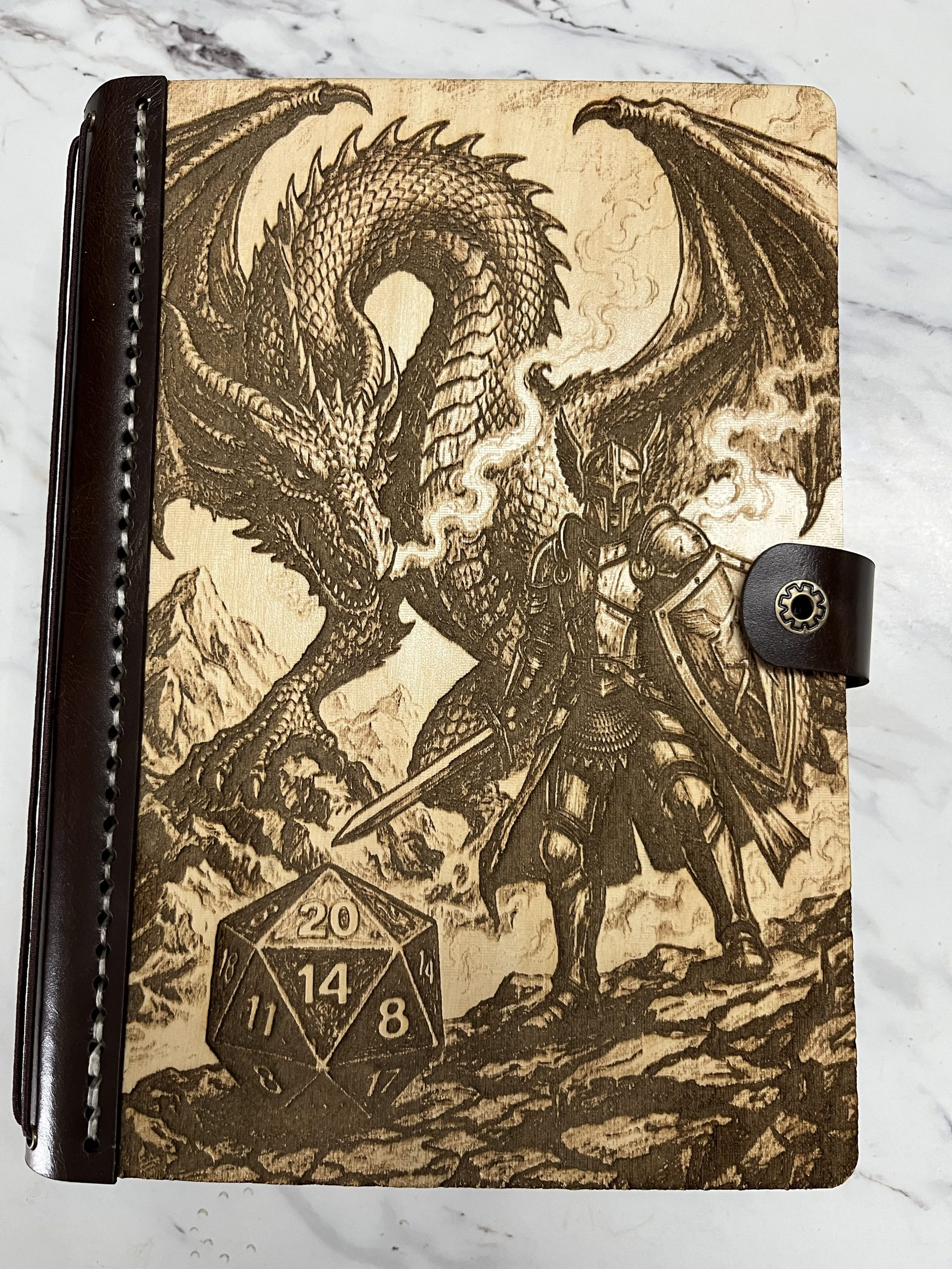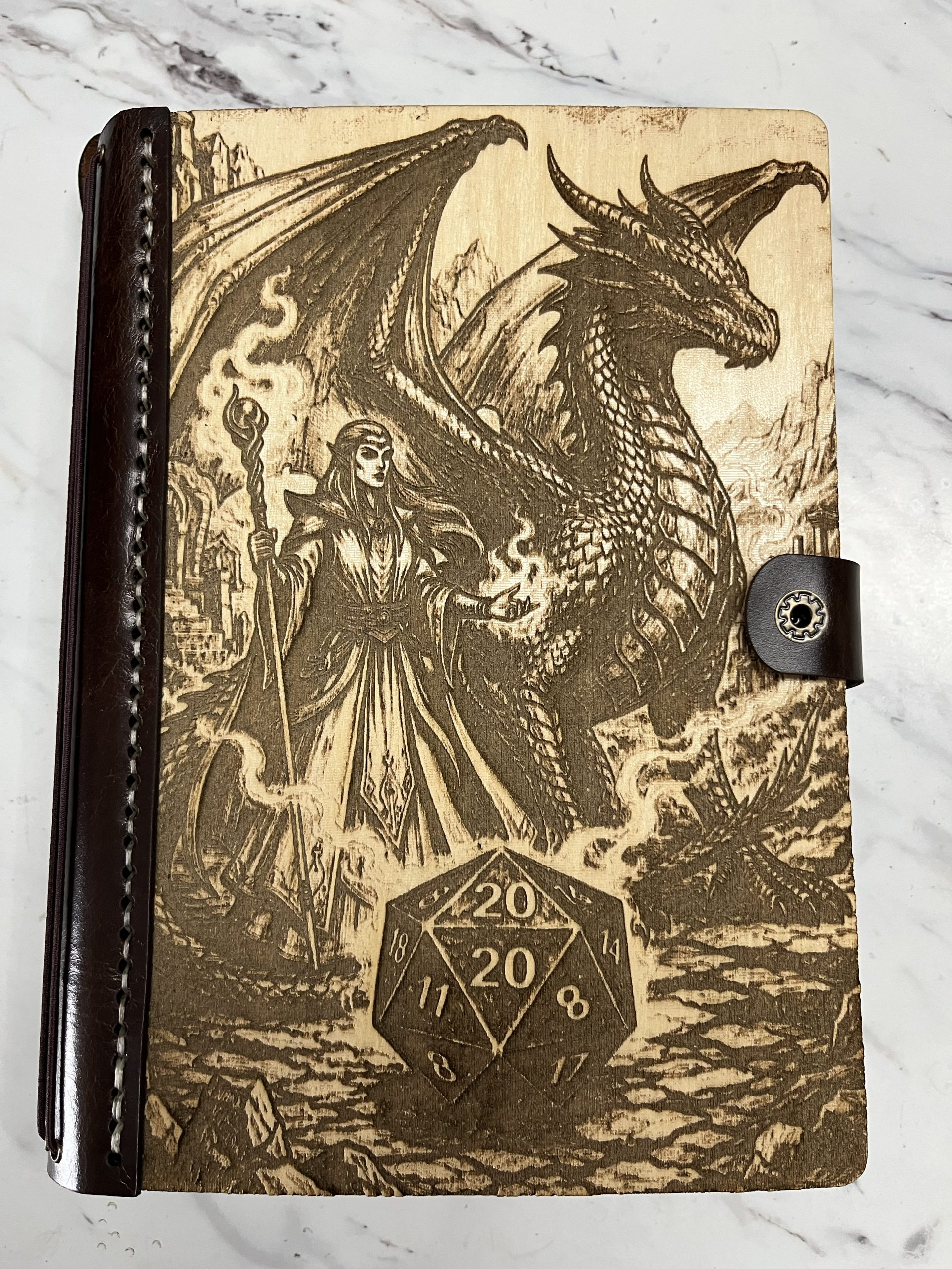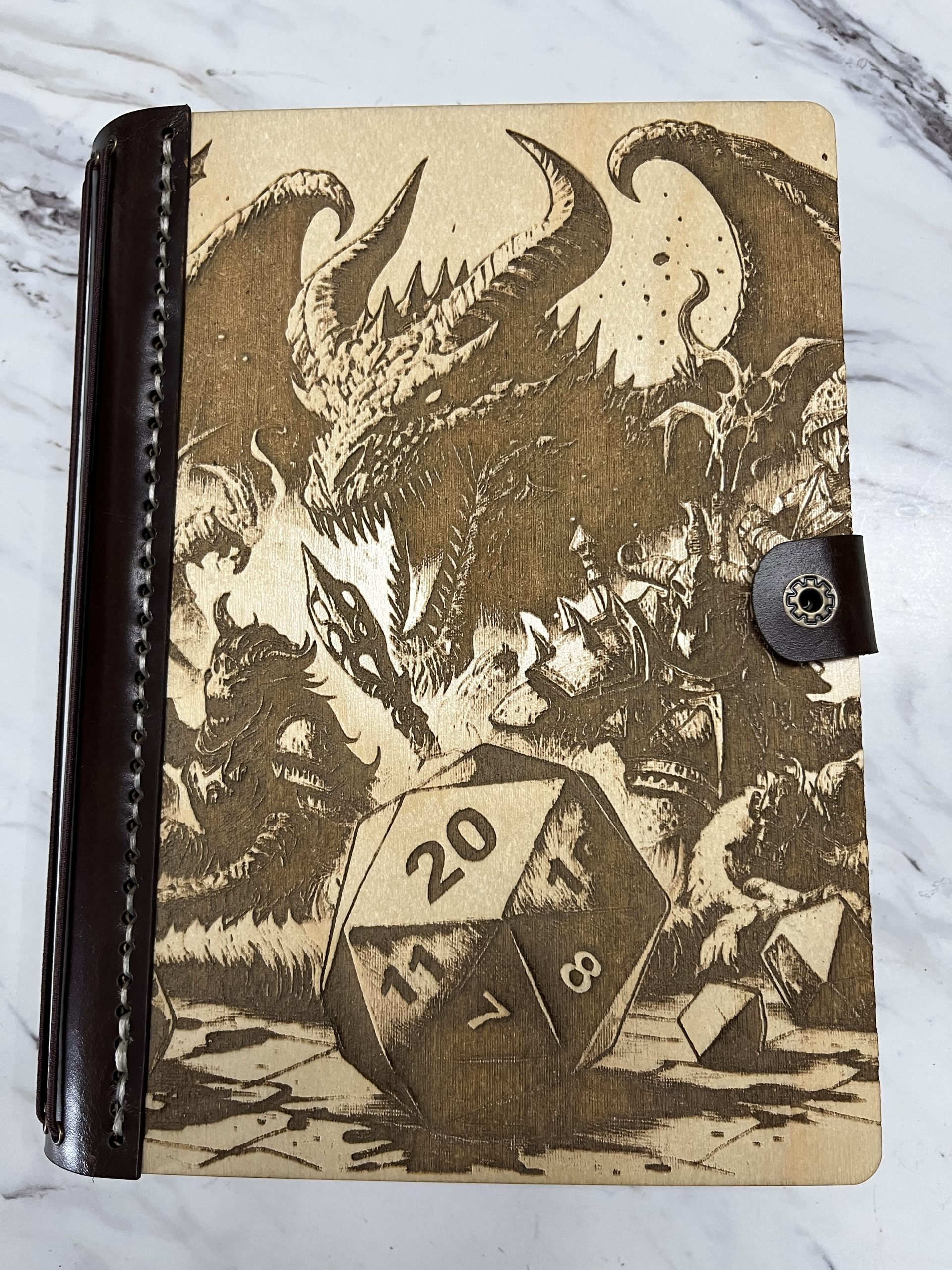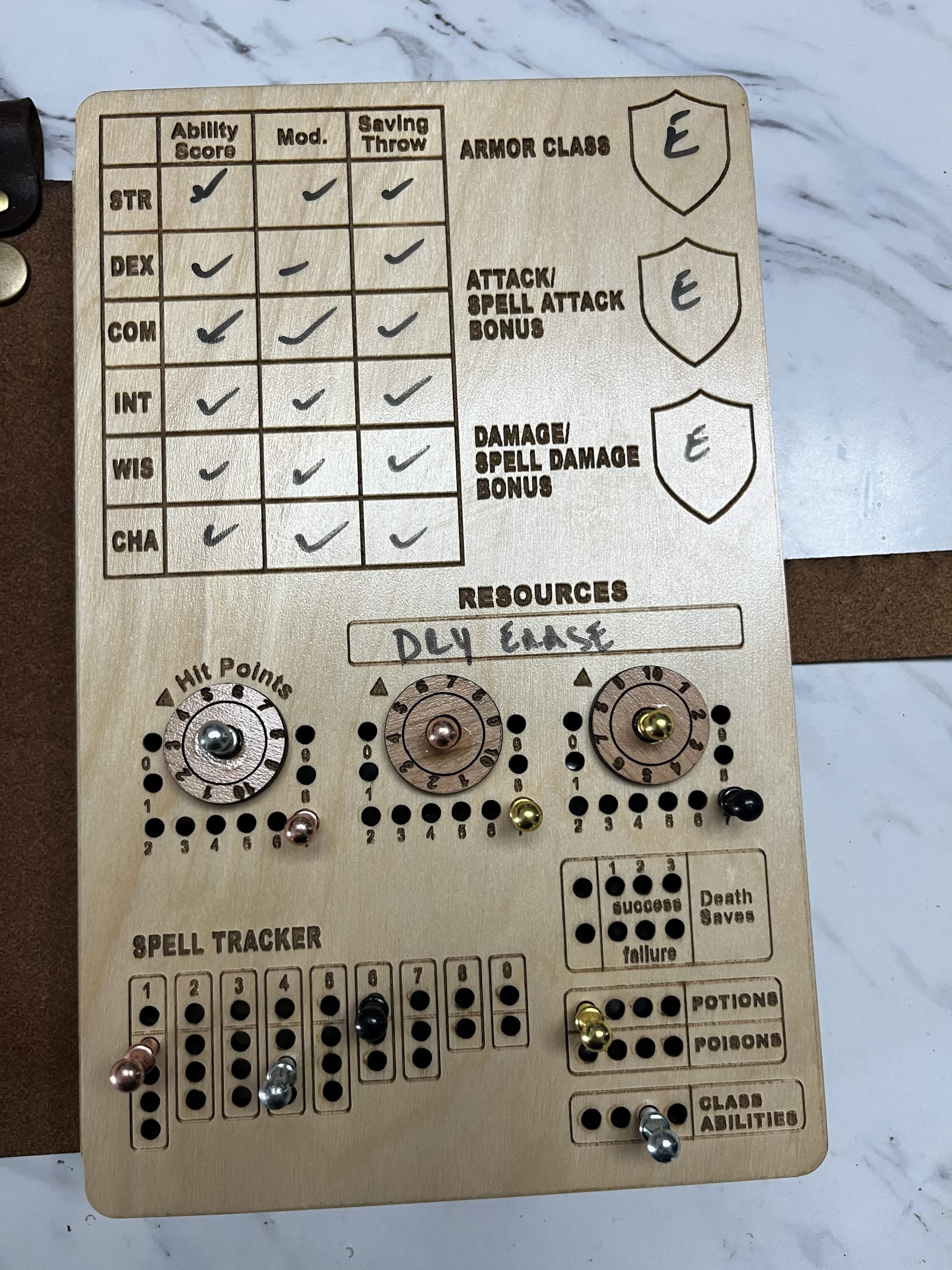 Tame the chaos of game night with this handcrafted RPG Player Tracker, forged from engraved white birch and hand-stitched genuine leather. Built for adventurers who prefer their gear organized and their notes ready at a moment’s notice.