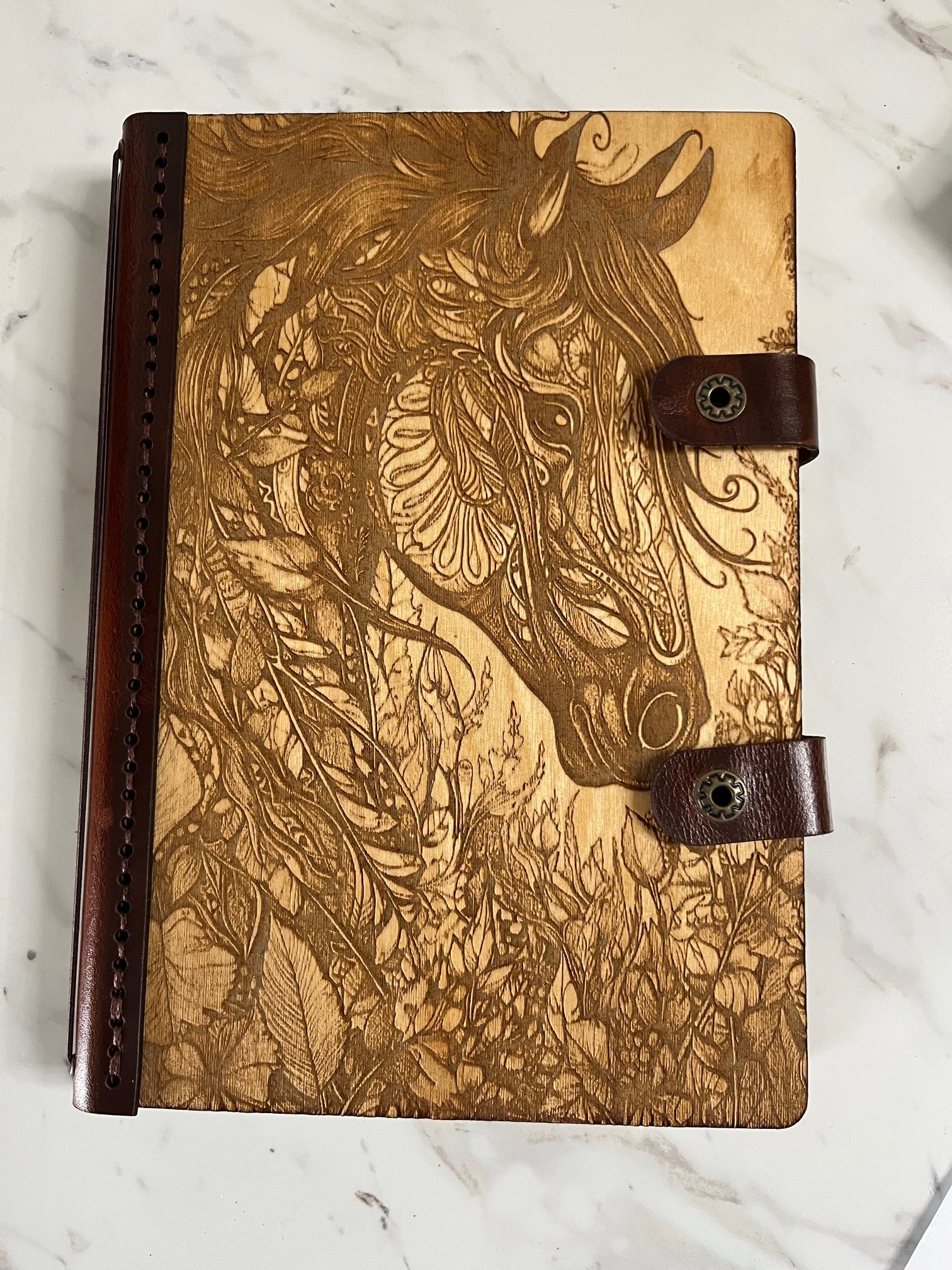Our hand-stitched journals blend nature and craftsmanship beautifully. Made from white birch wood and genuine leather, each journal features unique, custom-engraved designs.